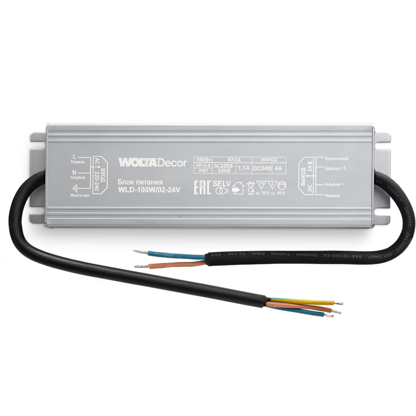 Блок питания WOLTA Decor WLD-100W/02-24V 100Вт 24В IP67 190х52х20мм