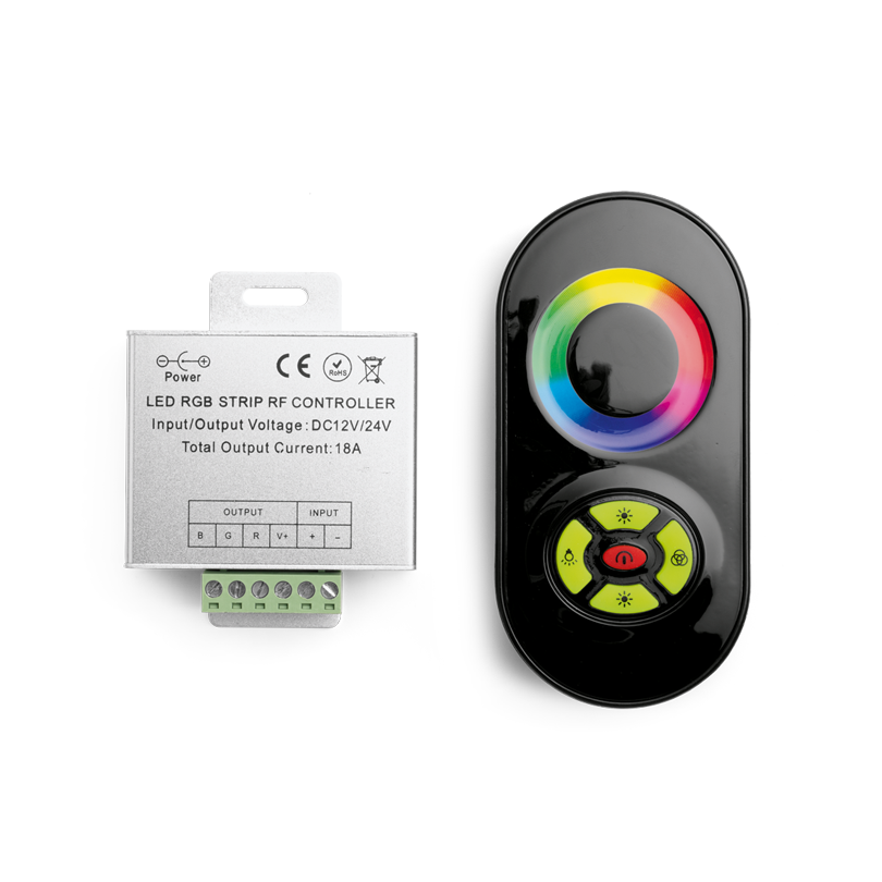 Контроллер с сенсорным пультом ДУ, материал корпуса контроллера - алюминий, пульта ДУ - пластик.