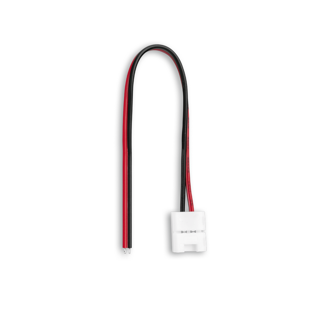 Одиночный коннектор с проводом 15см для подключения питания (блок питания-лента) к открытым светодиодным одноцветным лентам (SMD2835) шириной 8мм. Максимальный допустимый ток 3А, напряжение до 48В.