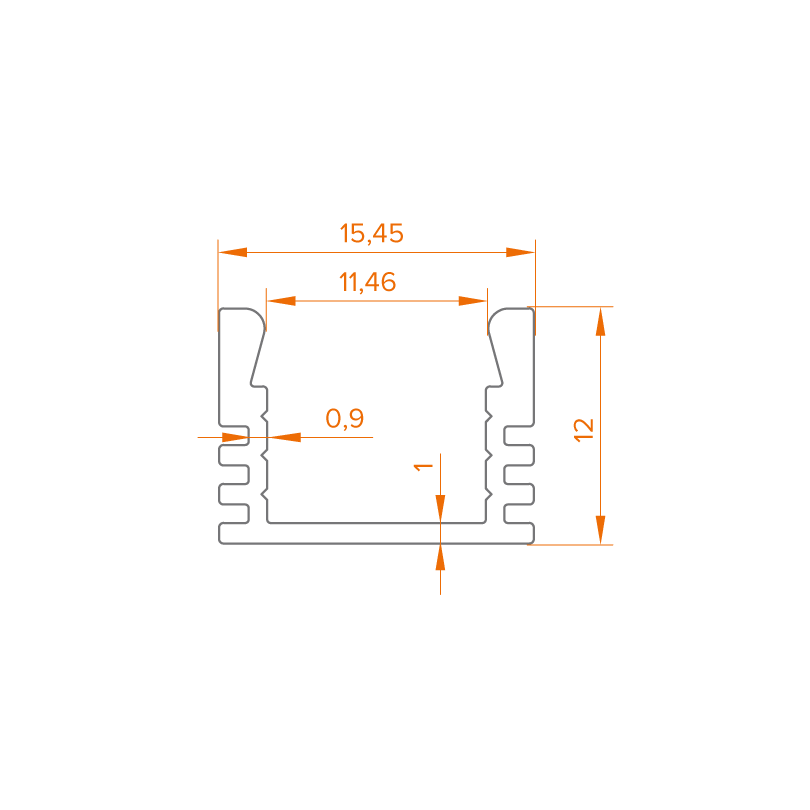 Алюминиевый анодированный профиль для светодиодных лент серии WLS. Ширина площадки для ленты 11,2 мм.